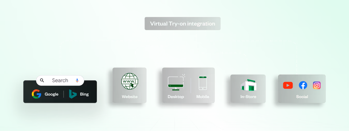 Omnichannel integrations play a pivotal role in serving an exceptional Virtual Try-on experience by ensuring a seamless and consistent buying journey. Through the integration of Virtual Try-on across all channels, brands can ensure a centralized ROI measurement, enhancing the overall efficiency of their marketing efforts. Consistency is paramount, and whether customers engage with Virtual Try-on through a mobile app, in-store kiosk, website, search engines like Google or Bing, YouTube, or other discovery channels, a universal experience is maintained. Ultimately, a robust Virtual Try-on solution must adeptly cater to consumers on the specific channel where they are shopping or browsing for products, creating a cohesive and user-centric experience across diverse touchpoints. Ecommerce giants like Amazon have started to integrate a Virtual try-on experience in for product categories like eyewear and footwear.